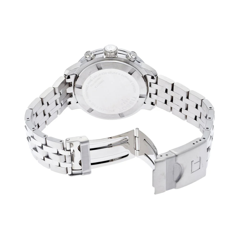 Tissot PRC 200 Chronograph Black Dial Silver Steel Strap Watch For Men - T055.417.11.057.00