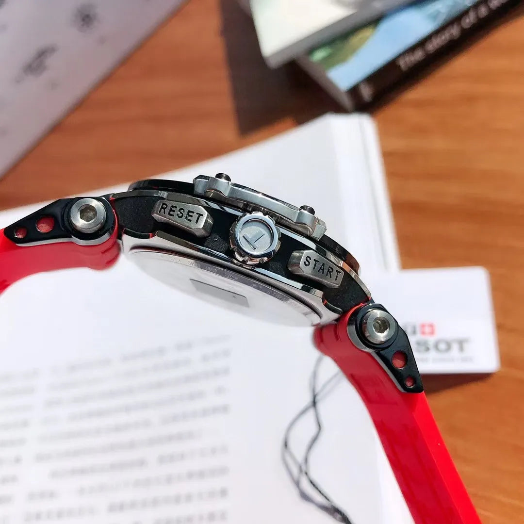 Expertly crafted by Tissot, the T Race Chronograph Watch for Men is a sleek and stylish timepiece. Featuring a black dial, red silicone strap, and precise chronograph movements, this watch offers both function and fashion. Perfect for any occasion, elevate your style with this must-have accessory.