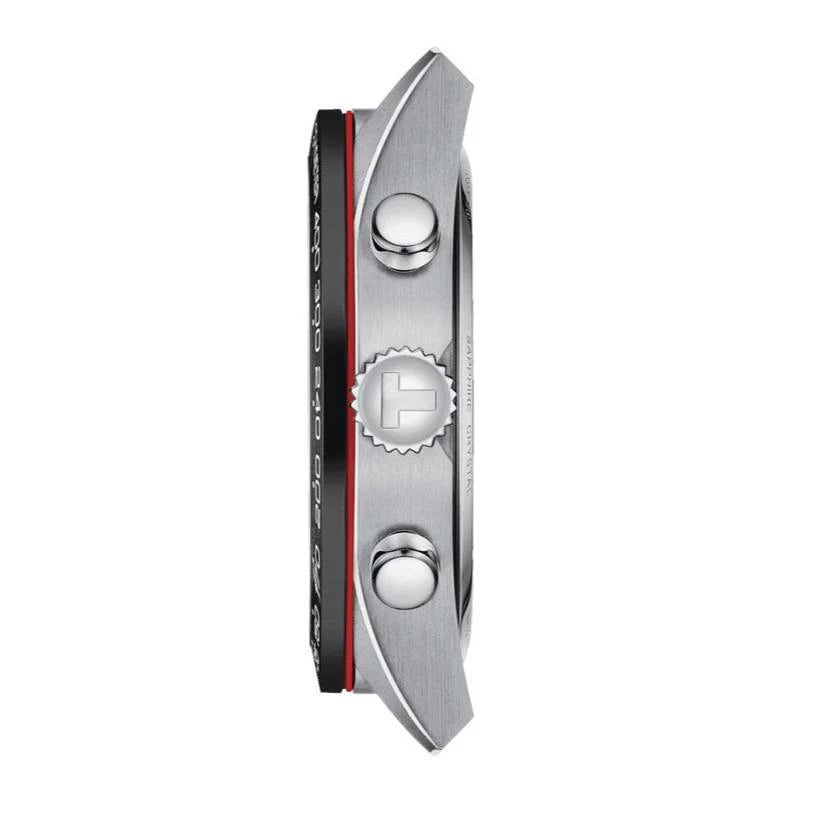 Tissot PRS 516 series takes time to reflect on its 1960s motorsport-inspired origins. Wearers of the Tissot PRS models are equipped with timepieces integrating the innovations in Swiss watchmaking to complement nostalgic design elements from the racetrack. On some of these models, the movement can be seen in action through the distinctive case back shaped like the steering wheel of a pioneering sports car. The Tissot PRS 516 Chronograph T131.617.16.032.00 has a quartz movement, Silver dial color, Stainless Steel with Black PVD case material and Leather strap.